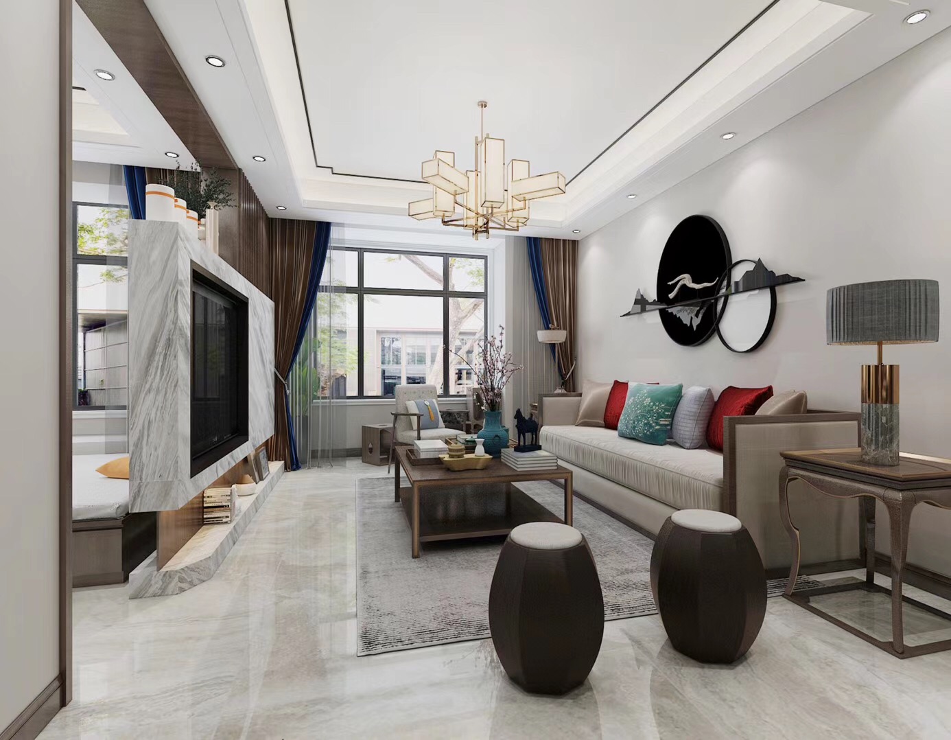 大眾上河灣145平三室兩廳兩衛新中式風格裝修,新中式風格,既能滿足父母對中國風的喜愛,又能滿足年輕人對現代感的需求。