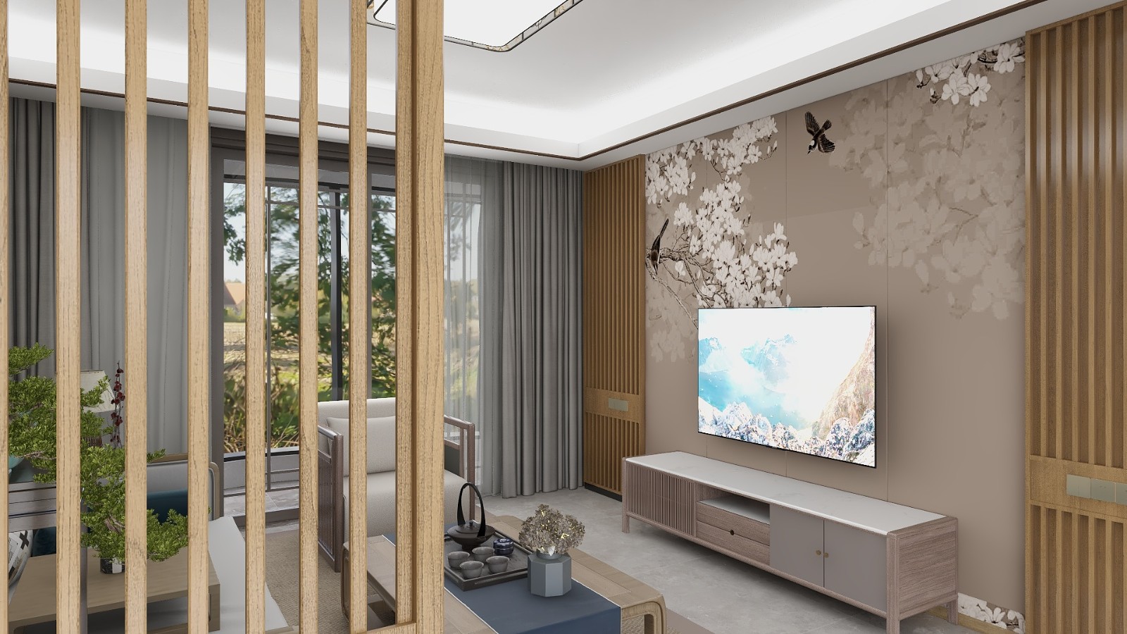 新中意境的背景墻,在富有禪意的同時(shí)不失年輕的活力